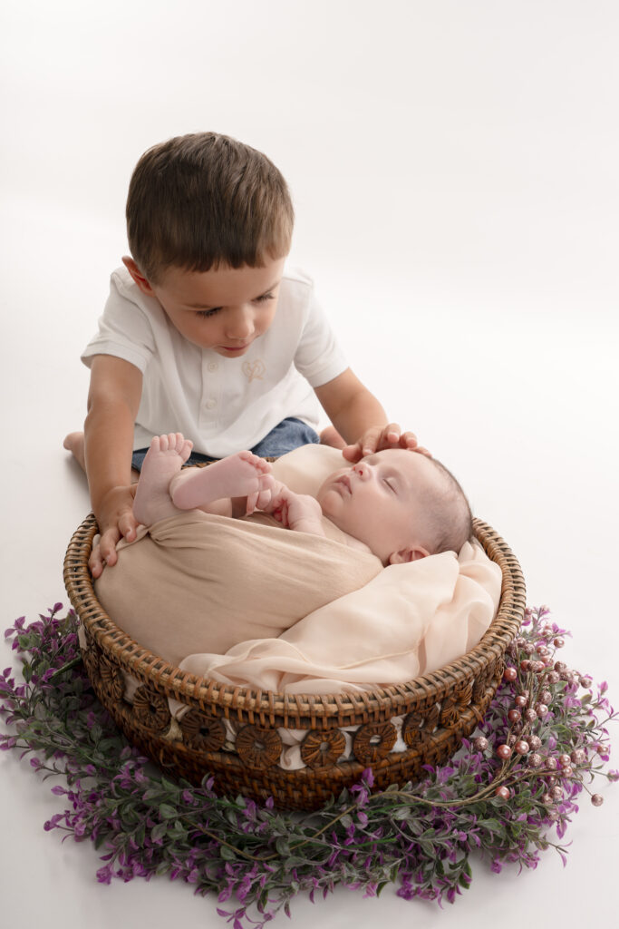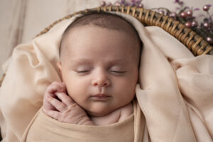 - 2 mises en scène de votre choix + prises de vues du bébé emmailloté et/ou semi-nu