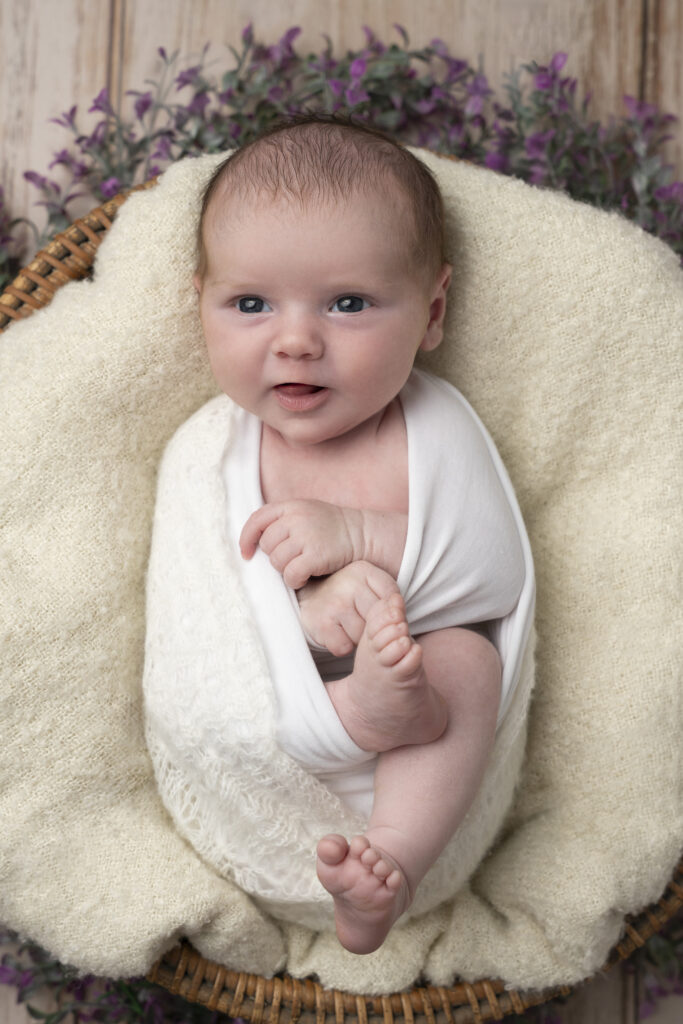 - 1 mise en scène avec contenant + prises de vues du bébé emmailloté